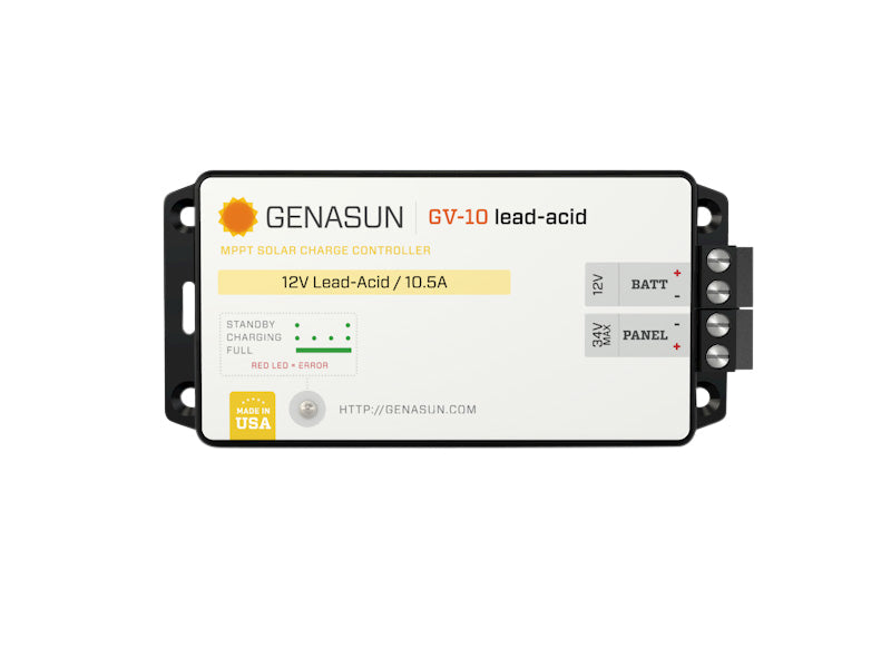 - including a Genasun GV-10 12 volt lead acid mppt (GV-10-Pb-12V)